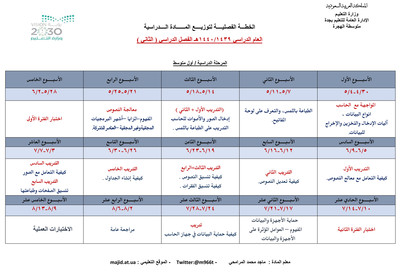 الخطة الفصلية لتوزيع مادة الحاسب و تقنية المعلومات ..